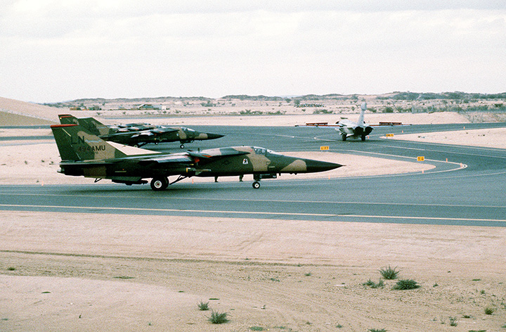 F111F of the 48th Fighter Wing prepares for a combat mission during Operation Desert Storm, 1991.