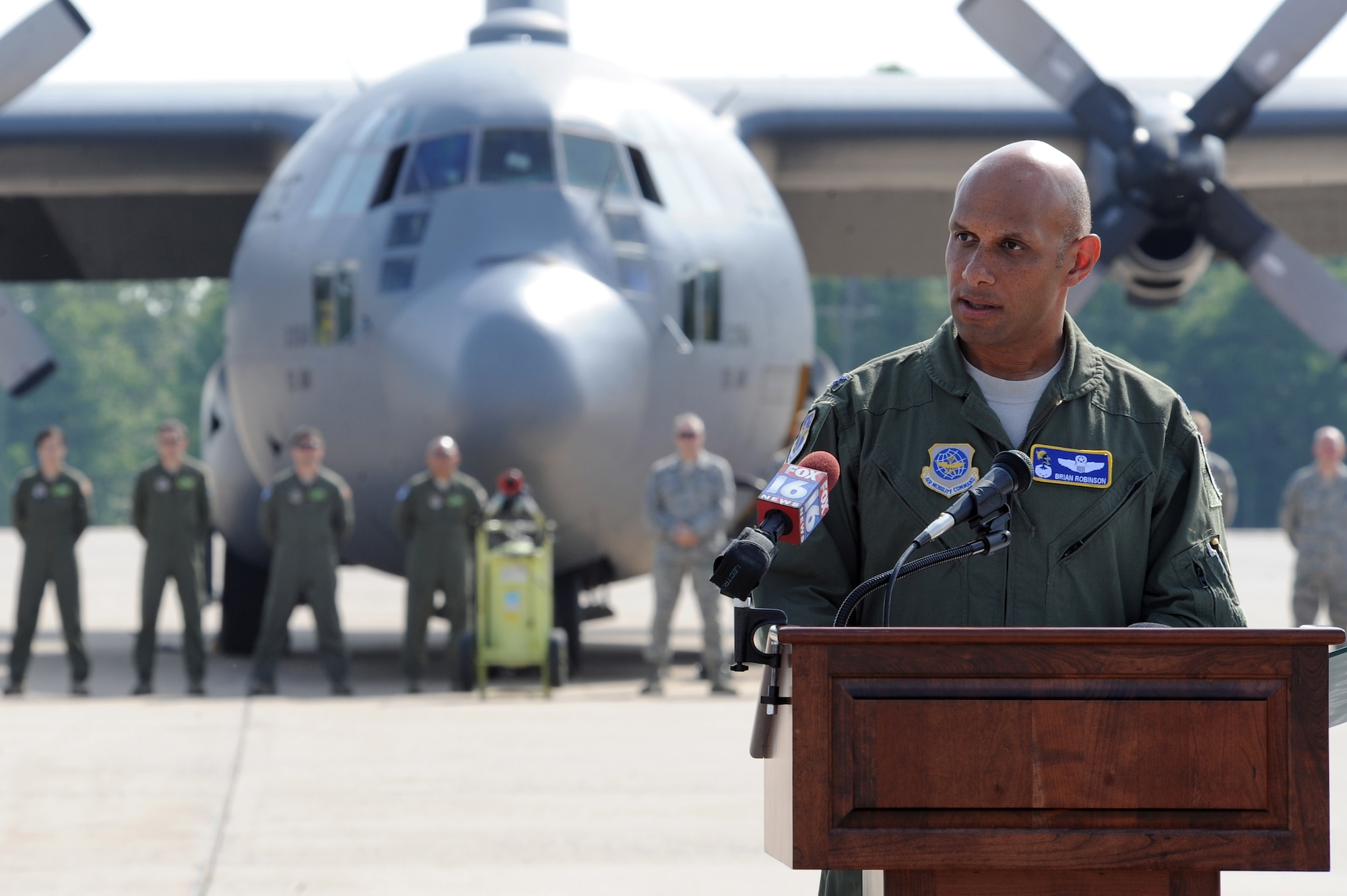 C-130E Hercules 61-2358 gets a water arch salute as it taxies down the flightline May 1, 2012, at Little Rock Air Force Base, Ark. The aircraft will retire to Edwards AFB, Calif., where it will be used as a static display. (U.S. Air Force photo/Airman 1st Class Rusty Frank)