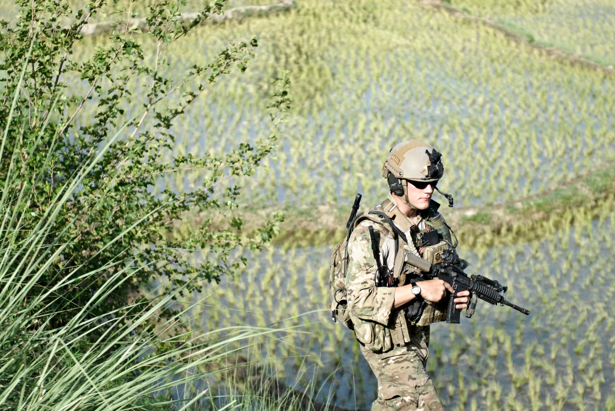 Senior Airman Michael McAffrey gives Afghan children bottles of water after completing a mission in Khanda Village in Laghman province, Afghanistan, June 18, 2011. Airman McAffrey is a joint terminal attack controller with the Washington Air National Guard's 116th Air Support Operations Squadron. (Courtesy Photo)