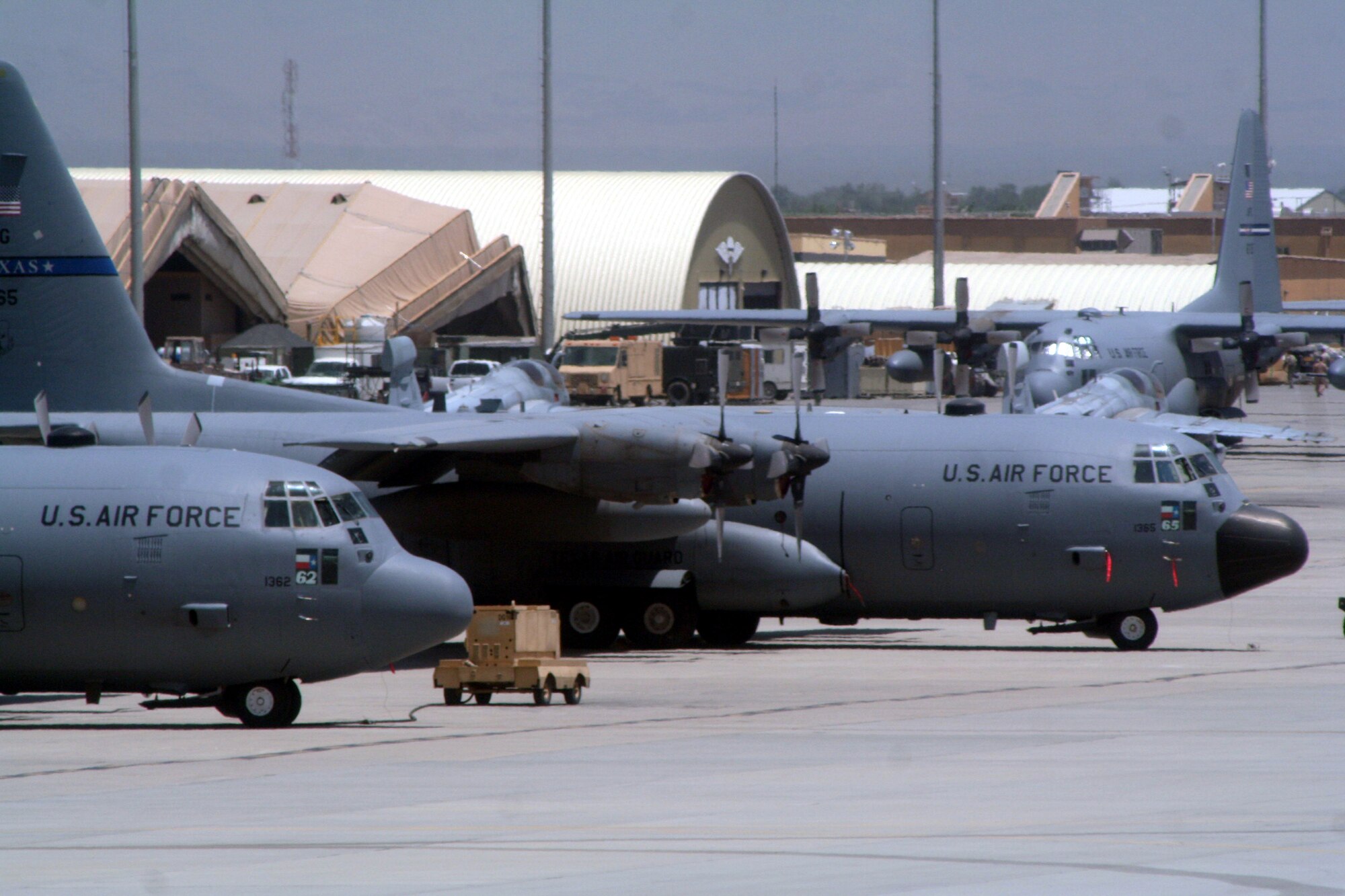 A C-130 Hercules aircraft deployed with the 774th Expeditionary Airlift Squadron taxies on the flightline at Bagram Airfield, Afghanistan, on June 6, 2011, prior to departing on a combat airlift mission. The 774th EAS is part of the 455th Air Expeditionary Wing at Bagram Airfield. (U.S. Air Force Photo/Master Sgt. Scott T. Sturkol)