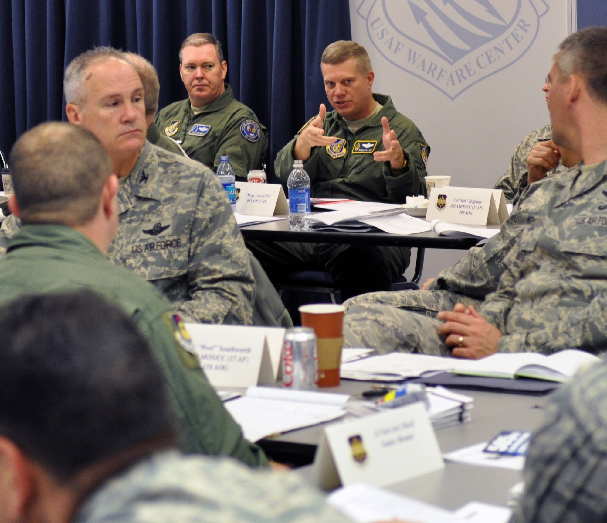 Col. Edward McKinzie, 505th Command and Control Wing commander, welcomes Air Force C2 leaders during an AOC Commanders Conference Nov. 16 through 18, 2010, at Hurlburt Field, Fla. The wing hosted the event because its mission, to improve warfighter capability through C2 testing, tactics development and training, is critical to the AOC and AFFOR staff capabilities of providing air power capability to the joint force commander. (U.S. Air Force photo/Bill Dowell)