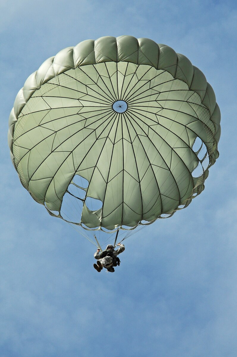 Italian Army soldier Giovanni Cacciari packs his parachute after landing Aug. 13 at the Bunker drop zone in southwestern Germany. U.S. soldiers and Airmen did a combined airborne drop with four other NATO countries. German, Italian, Belgium, and Dutch Armies attended the airborne drop officially called International Jump Week. (U.S. Air Force photo/Airman 1st Class Grovert Fuentes-Contreras)