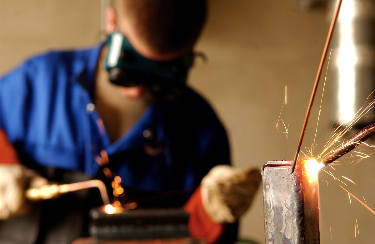 Senior Airman Christopher Swenson, 18th Logistics Readiness Squadron vehicular equipment maintenance journeyman, practices shielded metal arc welding June 4 at Kadena Air Base, Japan. Personnel from vehicle maintenance and body shop are completing a newly implemented welding course at the Pacific Air Forces Transportation Training Center. (U.S. Air Force photo/Tech. Sgt. Rey Ramon)
