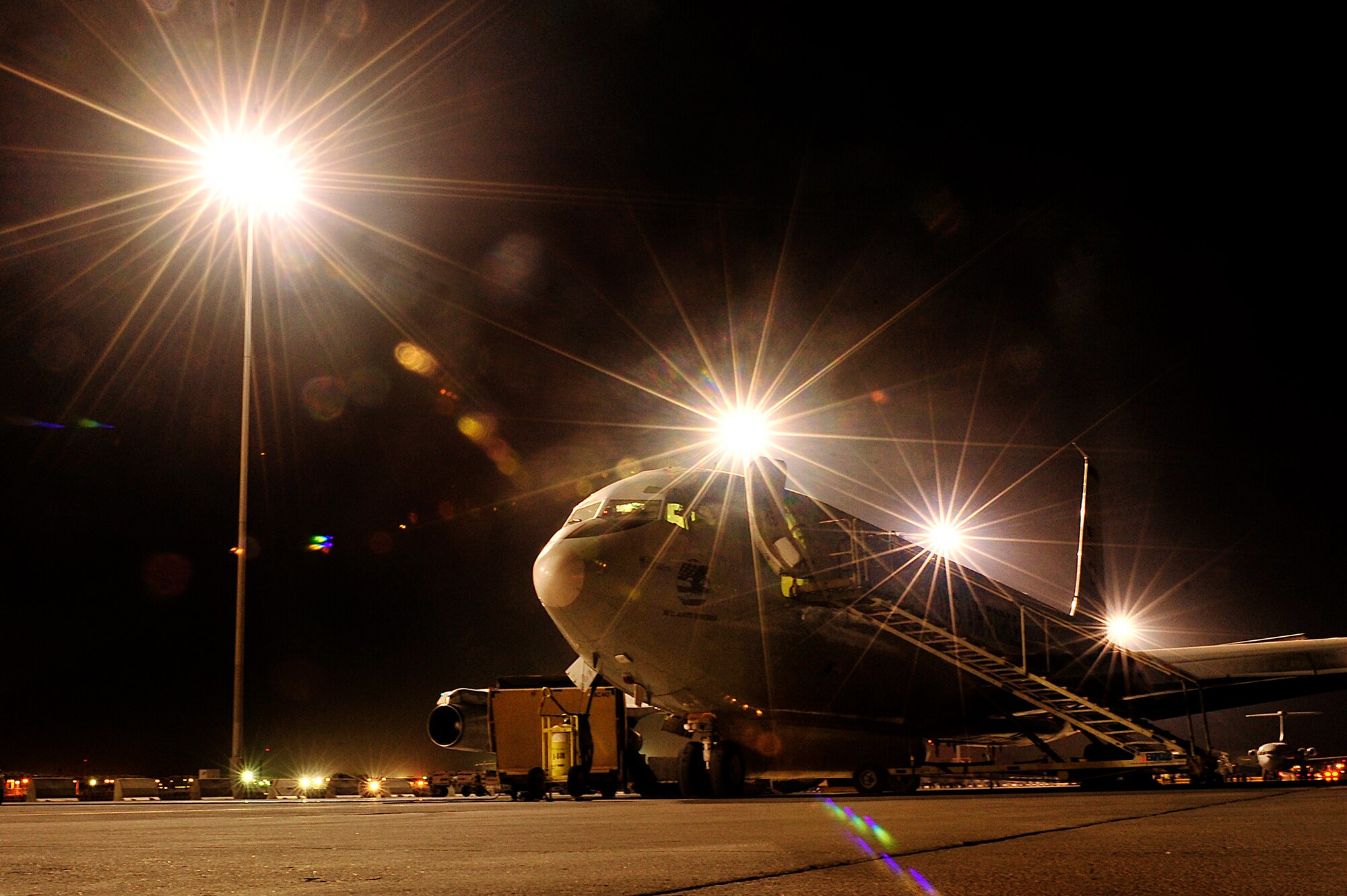An E-8C Joint Surveillance Target Attack Radar System aircraft sits on the ramp at an air base in Southwest Asia Sept. 1 before a mission over Iraq. The flight will mark 40,000 combat hours supporting the war on terrorism for the deployed Airmen of the 116th Air Control Wing. The E-8C Joint STARS, from the 7th Expeditionary Air Combat and Control Squadron, is an airborne battle management, command and control, intelligence, and reconnaissance aircraft. (U.S. Air Force photo/Staff Sgt. Aaron Allmon II)