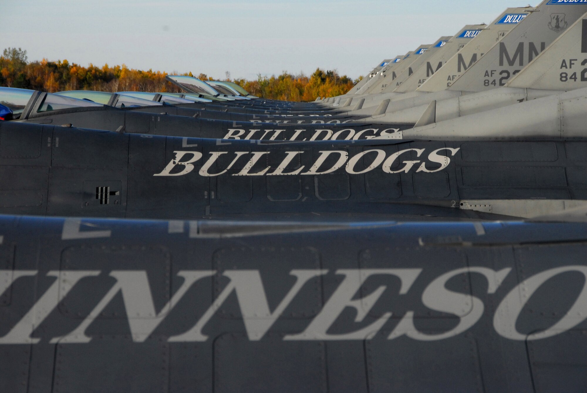 A 148th Fighter Wing F-16 Fighting Falcon from the Minnesota Air National Guard rests for the day awaiting the next day's inspection Oct. 13in Duluth, Minn. The unit is undergoing an Operational Readiness Inspection designed to evaluate the wing's ability to prepare and deploy servicemembers, equipment and support assets to a combat environment. (U.S. Air Force photo/Senior Airman Donald Acton)