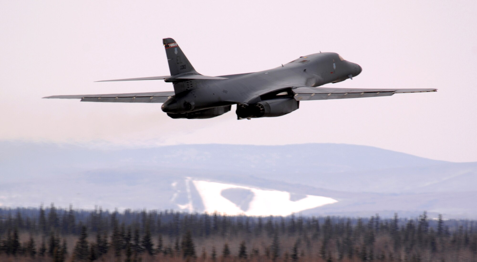 Two B-1B Lancers from Ellsworth Air Force Base, S.D., taxi on the flightline for Red Flag-Alaska 07-1 April 3 at Eielson AFB, Alaska. The series of Pacific Air Forces commander-directed field training exercises for U.S. forces, provide joint offensive counter-air, interdiction, close-air support, and large-force employment training in a simulated combat environment. (U.S. Air Force photo/Staff Sgt. Joshua Strang)