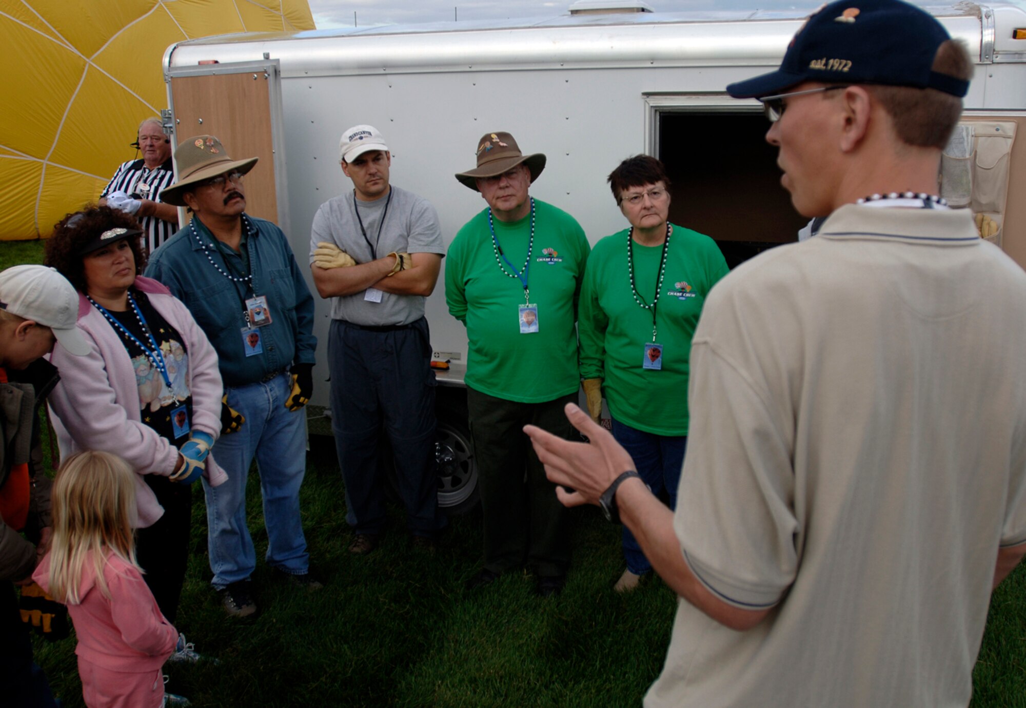 Staff Sgt. Bill Manus, balloon pilot, prepares to launch his balloon called the Shadow Dancer, with around 700 other hot air balloons participating in the first mass ascension over Fiesta Park during the Balloon Fiesta at Albuqerque, New Mexico, Oct. 7, 2006. Balloon Fiesta is a world-renowned New Mexico attraction where hot air balloons have been flying for 35 years. Sergeant Manus is an electronics warfare journeyman with the 150 Air National Guard. (US Air Force photo/Tech Sgt. Cecilio Ricardo Jr.)