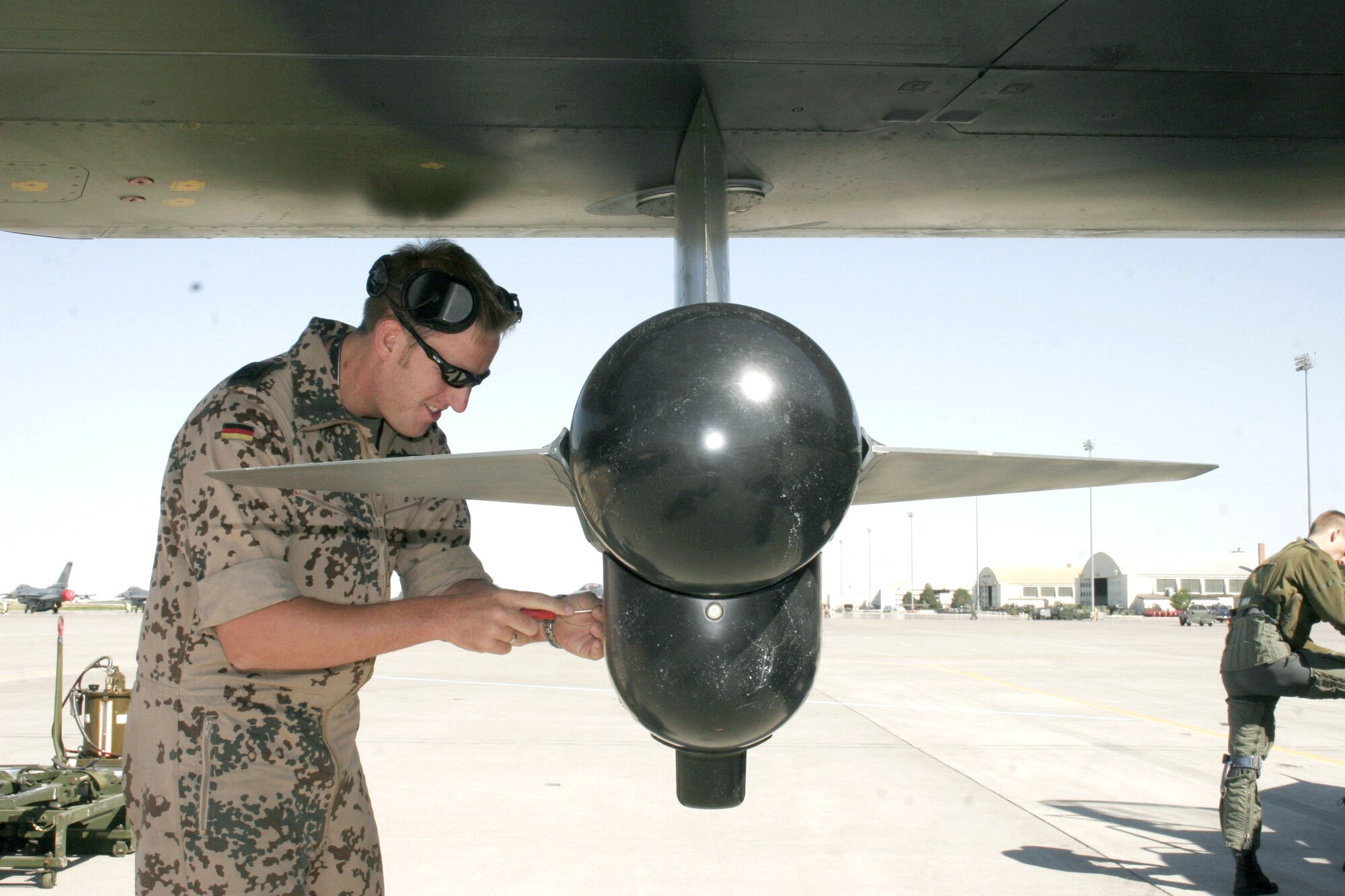 Tech. Sgt. Kalle Leichenwascher performs maintenance on a Tornado interdiction strike aircraft before a flight at Mountain Home Air Force Base, Idaho, on Wednesday, June 21. German air force aircrews and maintenance teams are working alongside their American counterparts during a joint training exercise. Sergeant Leichenwascher is a crew chief with the German air force. (U.S. Air Force photo/Master Sgt. Brian S. Orban)
