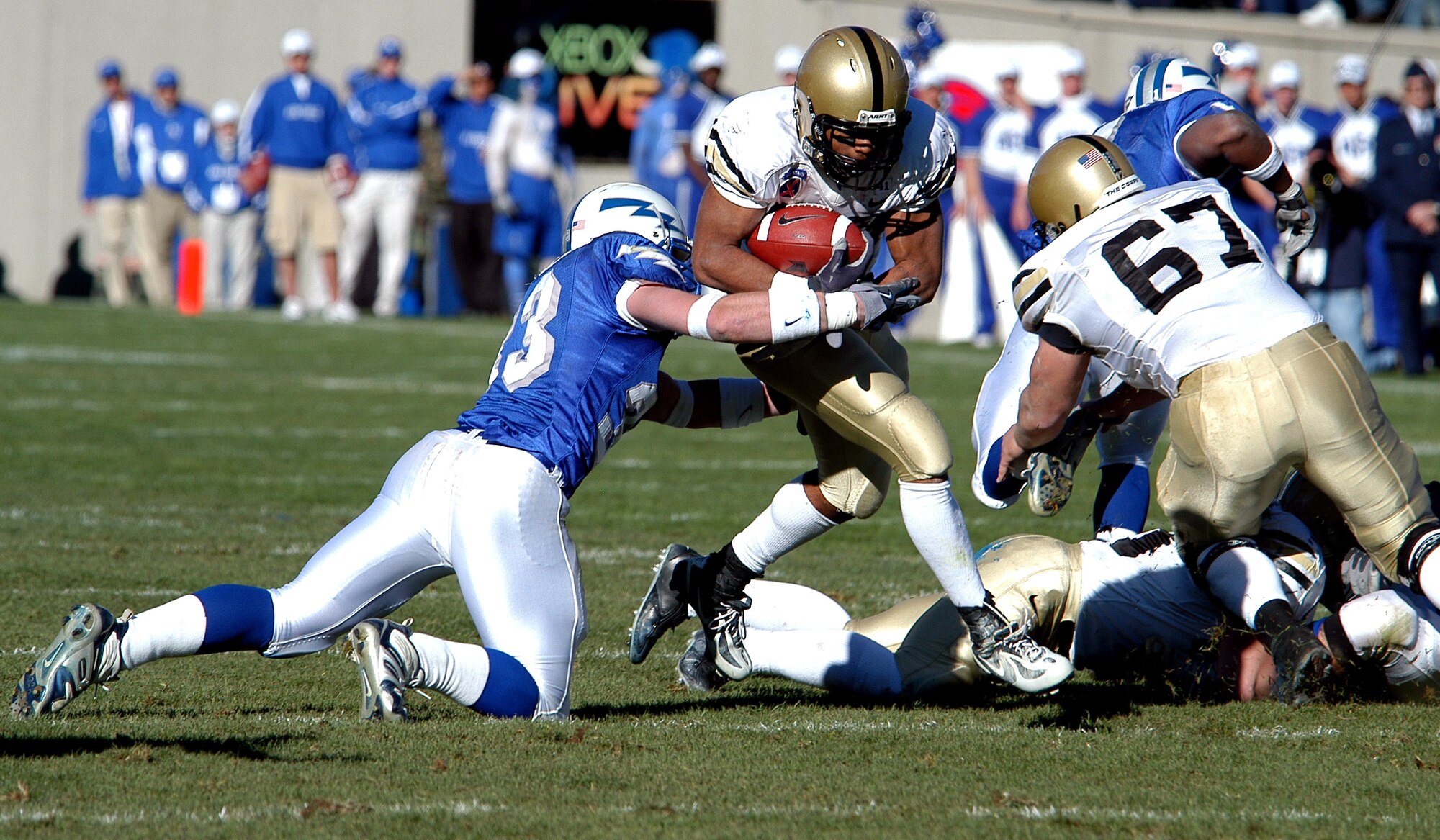 U.S. AIR FORCE ACADEMY, Colo. (AFPN) -- Air Force cheerleaders go through their paces prior to the opening kickoff against Army, as a quartet of F-15E Strike Eagles from the 90th Fighter Squadron, Elmendorf Air Force Base, Alaska, perform a fly over. (U.S. Air Force photo by Joel Strayer)
