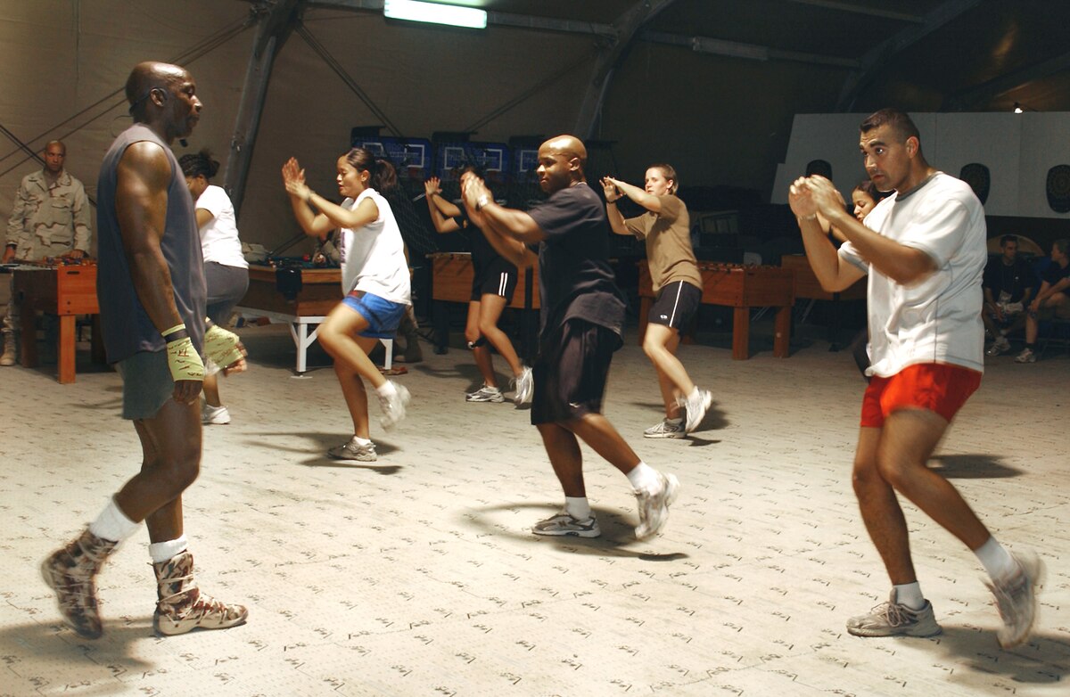 “Although teaching Tae Bo is fun, I really enjoy getting the opportunity to sit down and talk to the troops,” he said. “It gives me the chance to tell them, ‘We love you guys, and we appreciate what you are doing for our country.’”