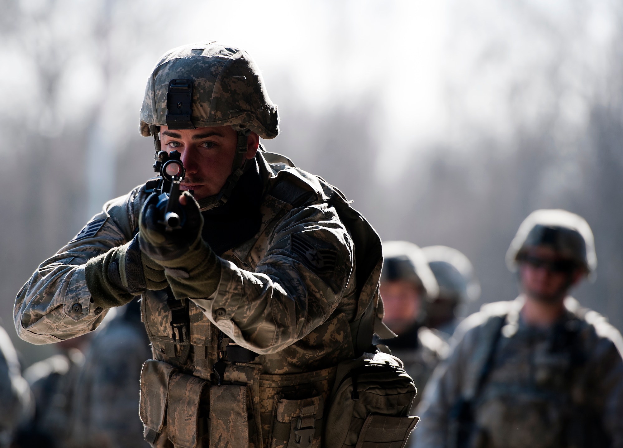 Airmen breach a door during Battlefield Leaders, Assaulters Course, March 12, 2014, Ramstein Air Base, Germany. Members of the 435th SFS taught Airmen a variety of skills during the course, including advance tactics, shooting and leadership. (U.S. Air Force photo/Senior Airman Damon Kasberg)
