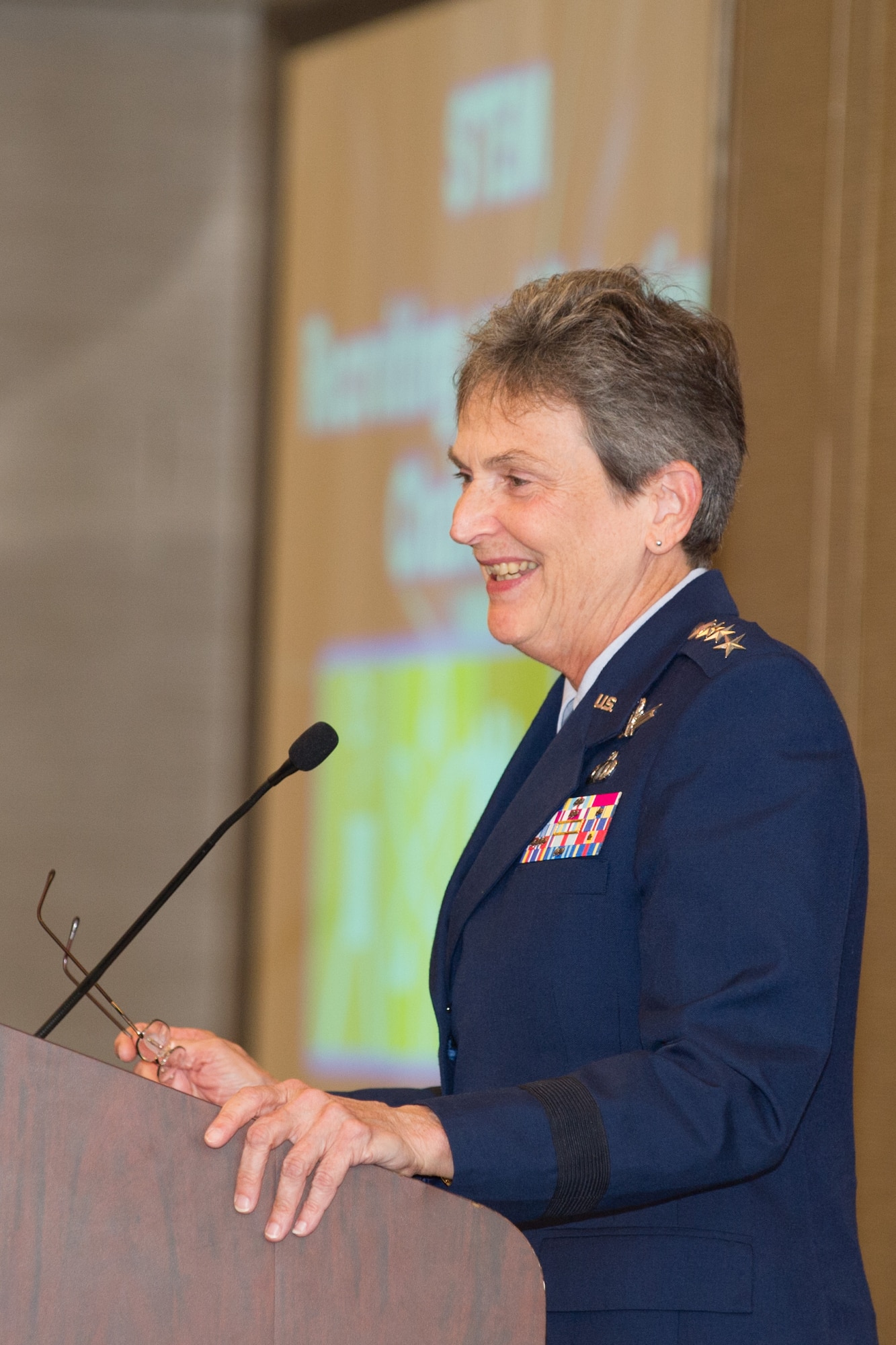 Gen. Ellen M. Pawlikowski, the commander of Air Force Materiel Command, and Lt. Gen. Arnold Bunch, military deputy in the Assistant Secretary for the Office of the Assistant Secretary of the Air Force for Acquisition, are briefed by Staff Sgt. David A. Pettinelli Jr., a radiochemistry lab technician at the Air Force Technical Applications Center, about the capabilities of equipment in Air Force TAC's Ciambrone Radiochemistry Lab. The generals were in town to participate in the 2016 Women in Science and Engineering Symposium at Patrick AFB, Fla., Sept. 7, 2016. (U.S. Air Force photo/Scott Powell)