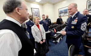 The chief master sergeant of the Air Force discussed Air Mobility Command’s contributions to the Air Force mission and the need to modernize the fleet during a visit to Scott Air Force Base, Illinois, Jan. 18, 2017.