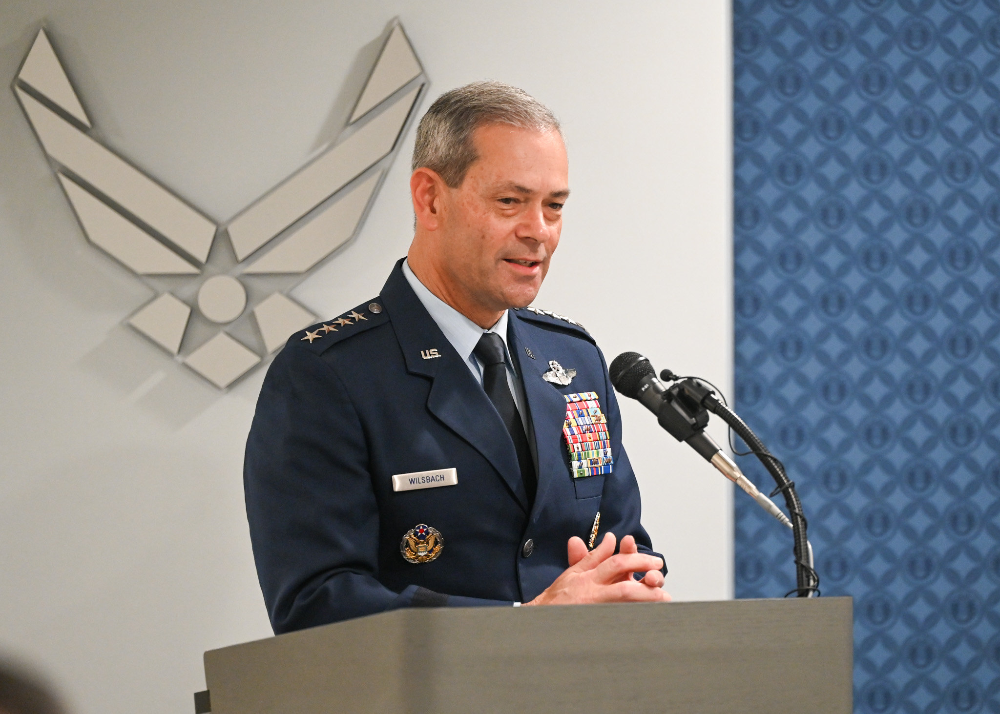 A KC-46A Pegasus sits on the flight line at Joint Base McGuire-Dix-Lakehurst, N.J., Nov. 18, 2025. Eight KC-46As will replace all KC-135 Stratotankers, bringing enhanced capabilities, such as boom and drogue defueling on the same sortie, worldwide navigation and communication, cargo capacity on the entire main deck floor, receiver air refueling, improved force protection, and multi-point air refueling capability. (U.S. Air Force photo by Senior Airman Aidan Thompson)