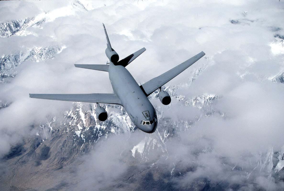 FILE PHOTO -- The KC-10A Extender is an Air Mobility Command advanced tanker and cargo aircraft designed to provide increased global mobility for U.S. armed forces. Using either an advanced aerial refueling boom, or a hose and drogue refueling system, the KC-10A can refuel a wide variety of U.S. and allied military aircraft. It is equipped with special lighting for night operations. The KC-10A's boom operator controls refueling operations through a digital fly-by-wire system. Sitting in the rear of the aircraft, the operator can see the receiver aircraft through a wide window. During boom refueling operations, fuel is transferred to the receiver at a maximum rate of 1,100 gallons per minute; the hose and drogue refueling maximum rate is 470 gallons per minute. The KC-10A can be air-refueled by a KC-135 or another KC-10A to increase its delivery range. (U.S. Air Force photo)