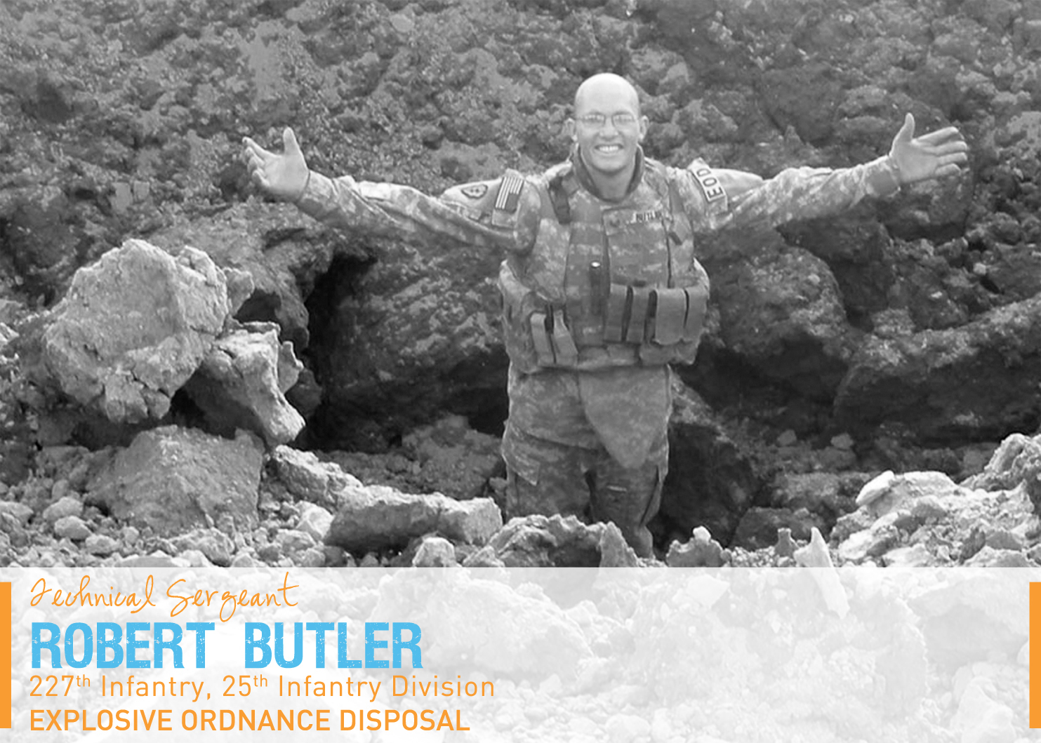 Portraits in Courage Vol 4: Tech. Sgt. Robert Butler, explosive ordnance disposal, 227th Infantry, 25th Infantry Division, and assigned to Vandenberg Air Force Base, Calif. He was first on the scene looking for secondary devices after an improvised explosive device exploded wounding five Iraqi policemen. (courtesy photo)