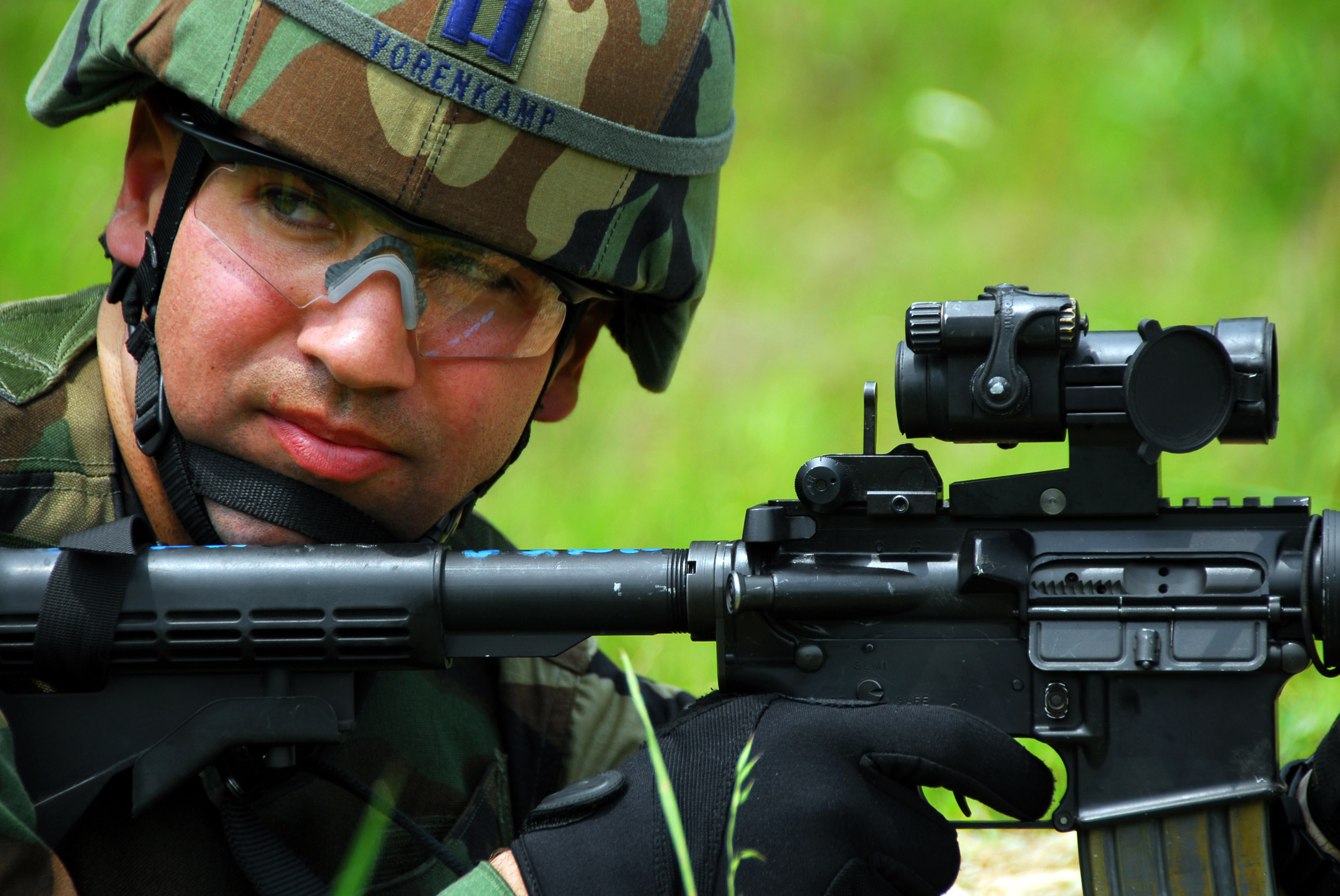 Capt. Daniel Vorenkamp prepares to fire his rifle June 8 during a training scenario near Osan Air Base, South Korea. Captain Vorenkamp is with the 51st Security Forces Squadron's quick reaction team, which provides security for all military personnel at the base. (U.S. Air Force photo/Airman 1st Class Chad Strohmeyer)